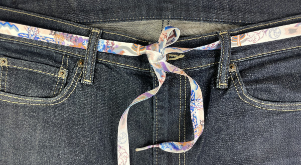 The old-new Retart laces "without packaging" are narrower, more flexible and can be tied better. The urban trend of wearing shoelaces as belt was introduced by skateboarders. They decided to ditch classic belts for several reasons and so should you: laces don´t have any buckle that would press into your stomach when you move, they are more comfortable and original. Besides, you can wear a different lace with each pair of trousers. Our lace is made of comfortable satin fabric, it is 150 cm long and 1,5 cm wide and on both sides it is printed with original artwork. One end of the lace are sloped and the name of the artist who designed the lace belt is in the middle. Just tie and wear!