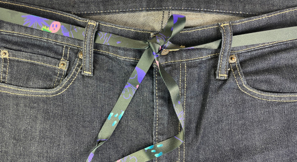 The old-new Retart laces "without packaging" are narrower, more flexible and can be tied better. The urban trend of wearing shoelaces as belt was introduced by skateboarders. They decided to ditch classic belts for several reasons and so should you: laces don´t have any buckle that would press into your stomach when you move, they are more comfortable and original. Besides, you can wear a different lace with each pair of trousers. Our lace is made of comfortable satin fabric, it is 150 cm long and 1,5 cm wide and on both sides it is printed with original artwork. One end of the lace are sloped and the name of the artist who designed the lace belt is in the middle. Just tie and wear!
